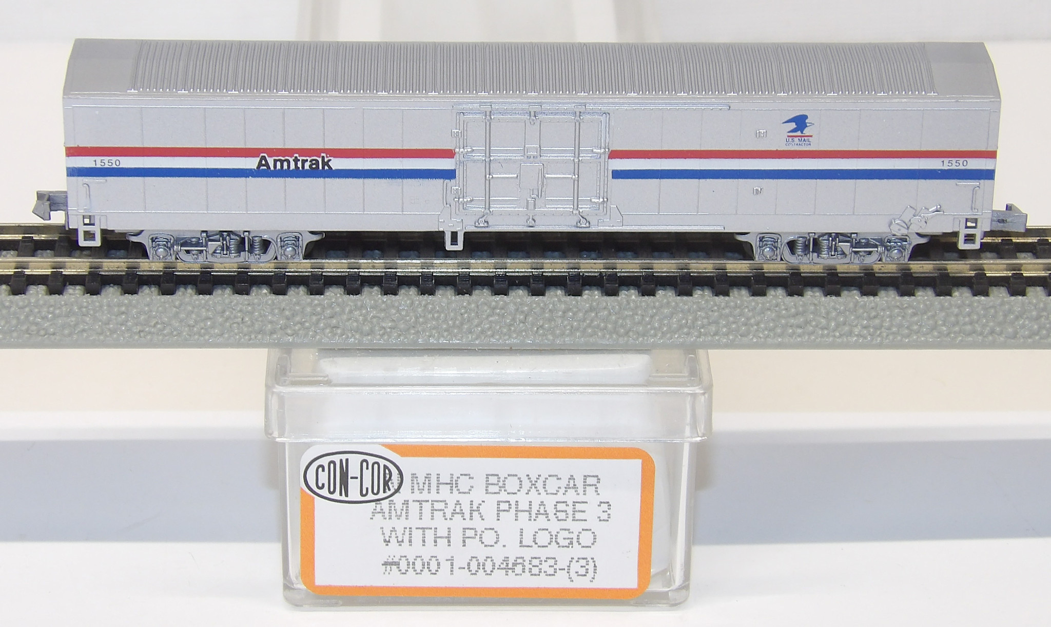 Con-Cor Con-Cor N scale Amtrak Phase III NMHC Boxcar w/ PO logo 0001-004683-3