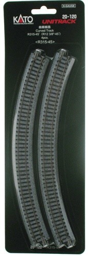 Includes Four 12-3/8" Radius Curve 45 Degree Curved Track Nickel Silver Rail Realistic Looking Roadbed Unijoiners Lock The Track Sections Together Firmly and Evenly Each Piece Of Radius Curve Track Measures 12-3/8" Or 315mm