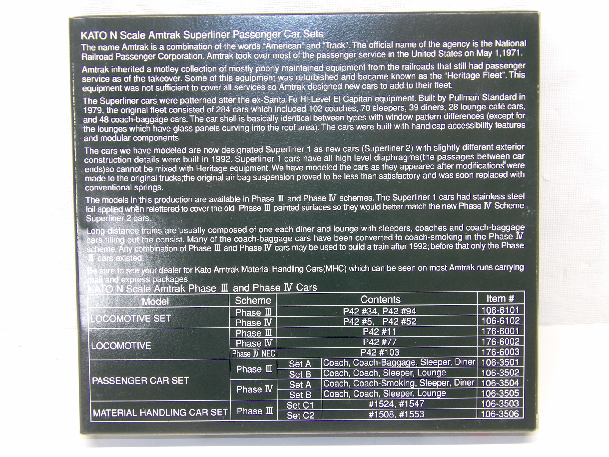 Kato Trains Kato N scale Amtrak Superliner Phase III 4 car set B 106-3502