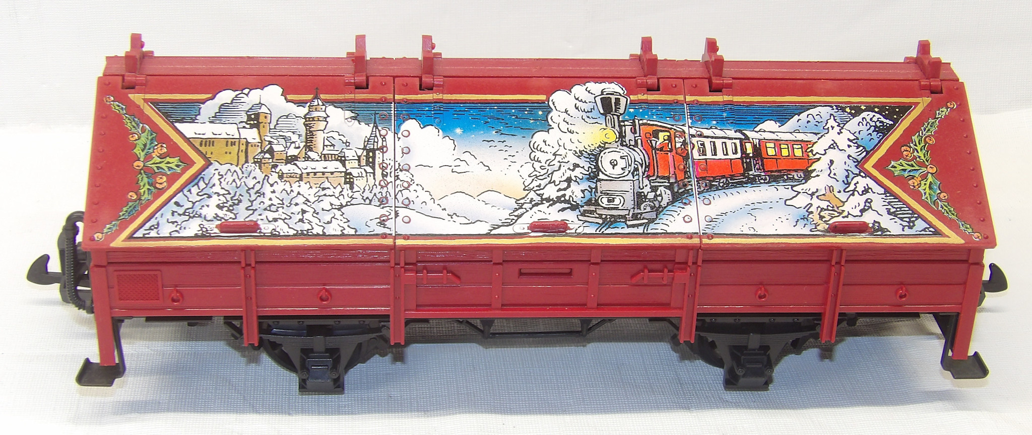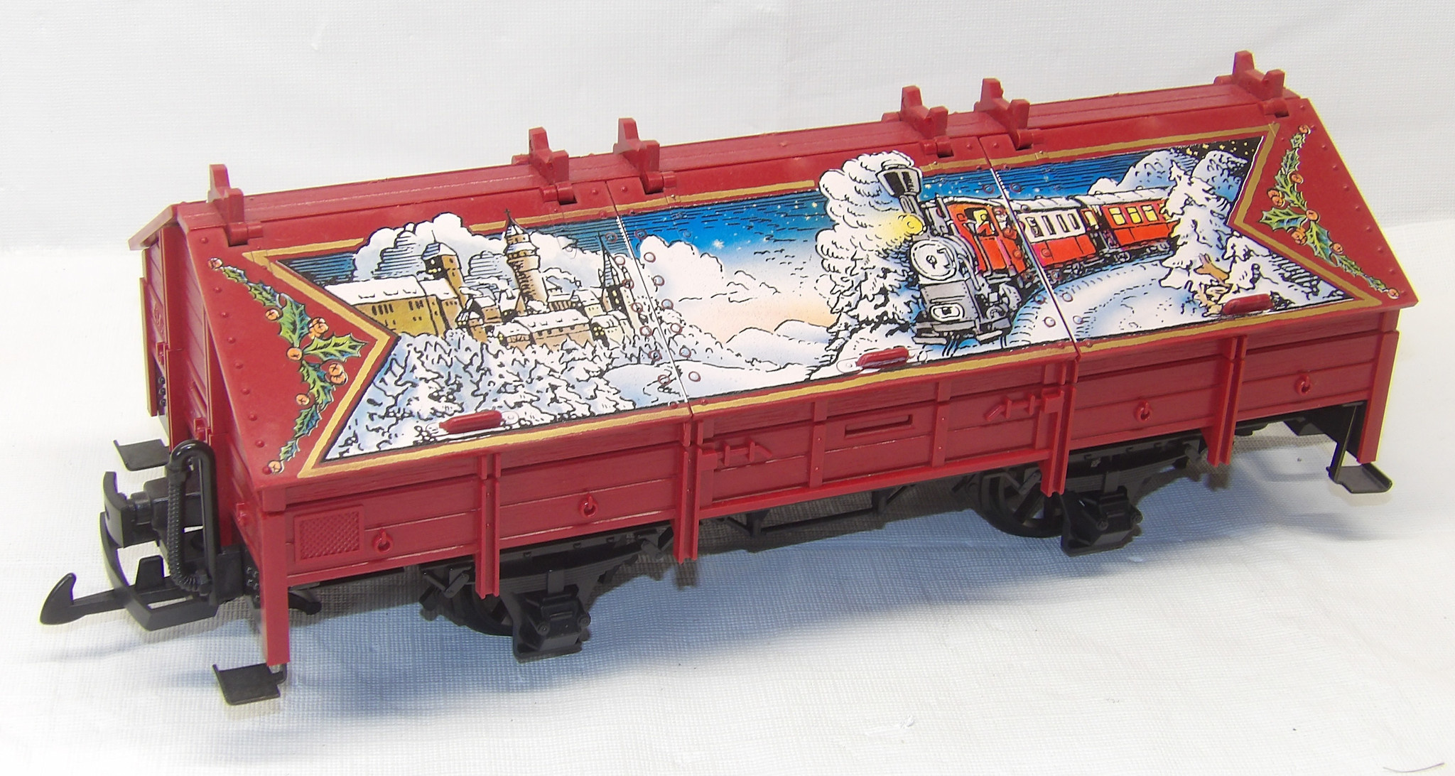LGB G scale Christmas Hinge Hatch Covered gondola 45110 (no box)