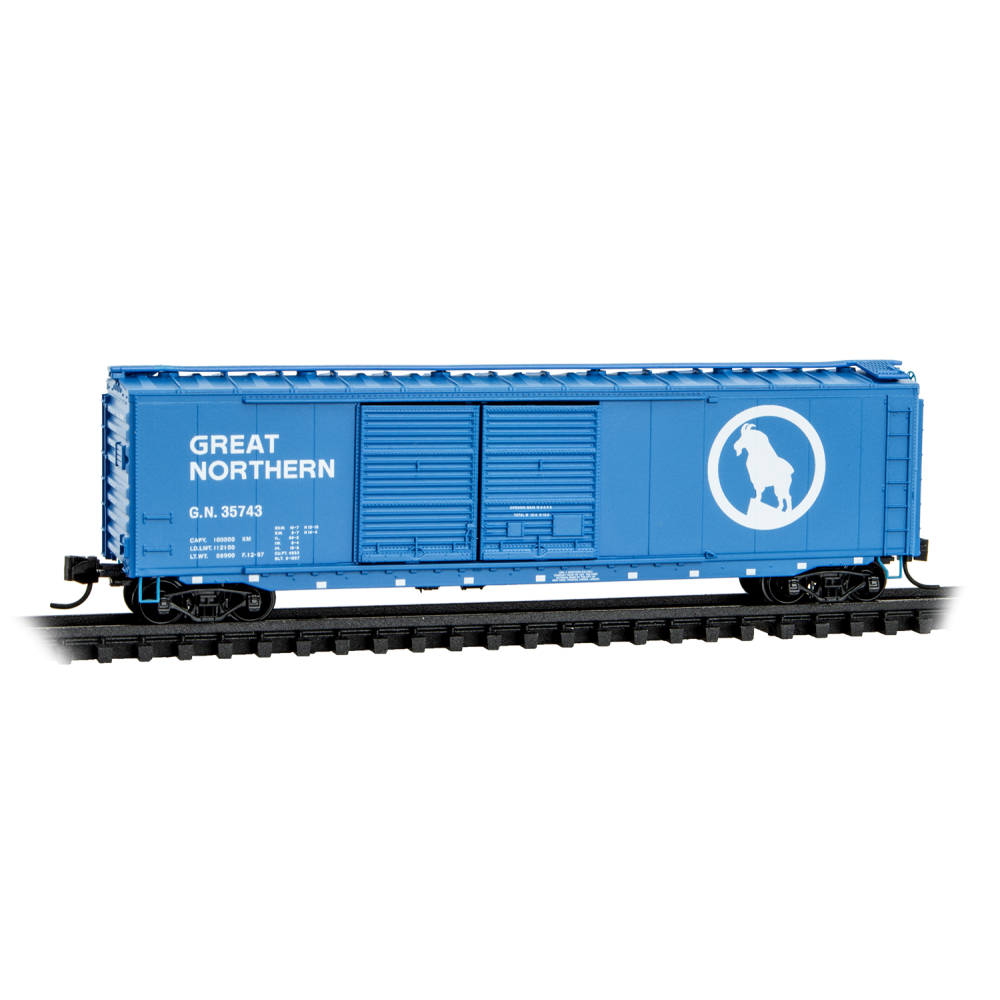 Built in the late 1950s for Great Northern Railway, this 50’ boxcar was used for lumber and plywood service, and was originally painted in the vermilion red scheme before being repainted in the Big Sky Blue scheme in the late 1960s. Great Northern was a Class 1 railroad founded in 1881 and eventually was merged with Northern Pacific, and others, to form Burlington Northern Railroad in 1970.