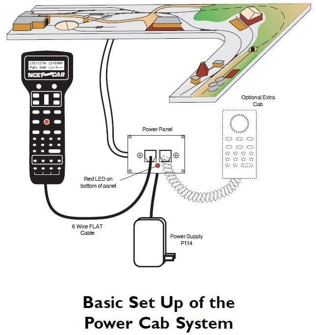 The best solution for a small layout or anyone starting out with DCC. 2 amp capacity. Usually 1 or 2 operators and using a fascia-mounted panel for the 2nd operator. Maximum of 4 cabs. The PowerCab must be plugged in to run layout. Typically most applications use a 7 to 10 foot cable. Use a CP6 to protect the Powercab against short circuits and divide the layout into as many as 6 sections.