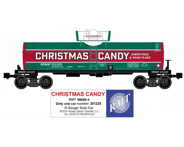 Ready Made Trains Ready Made Trains O Christmas Candy cane Single dome Tank Car # RMT-96850-4