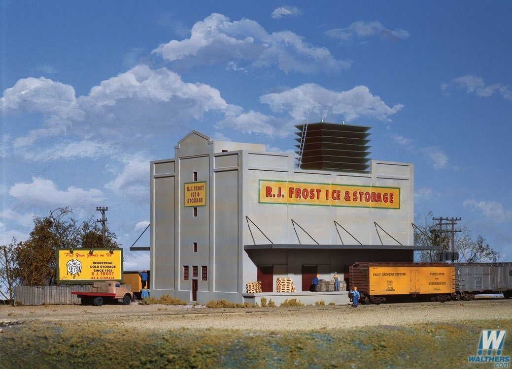 RJ Frost Ice & Storage is just one of a wide variety of Cornerstone HO Scale industrial buildings.
